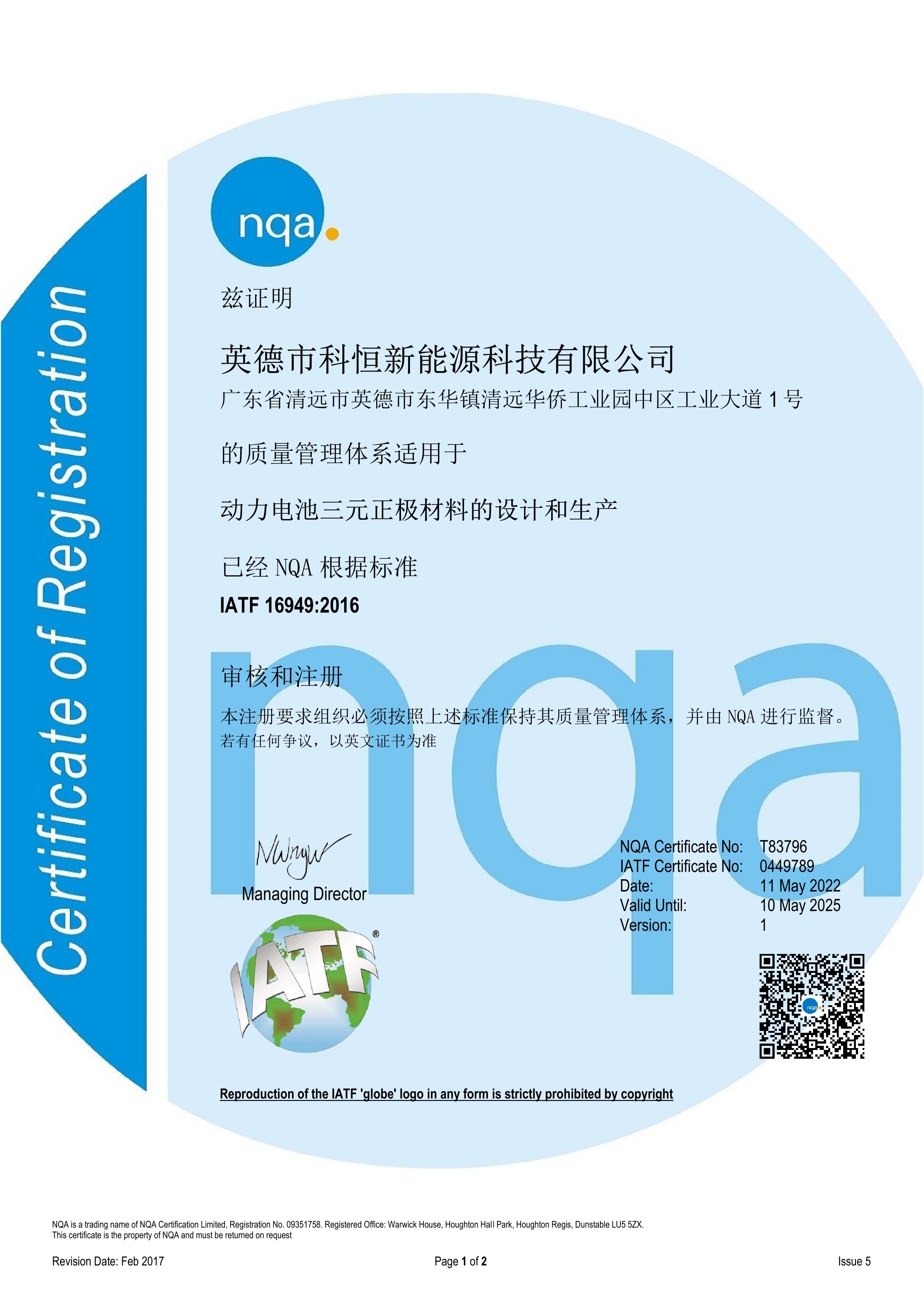 科恒堅(jiān)持“科技卓越、永恒追求、質(zhì)量第一、客戶至上”的質(zhì)量方針,設(shè)立各級(jí)質(zhì)量控制體系,保證產(chǎn)品質(zhì)量。公司先后通過(guò)了ISO9001質(zhì)量管理體系認(rèn)證和ISO14001環(huán)境管理體系認(rèn)證。公司以滿足客戶需求為宗旨,以卓越的科技成果、完善的制造過(guò)程,制造一流的產(chǎn)品、增值的服務(wù)、共享的價(jià)值,讓客戶滿意。